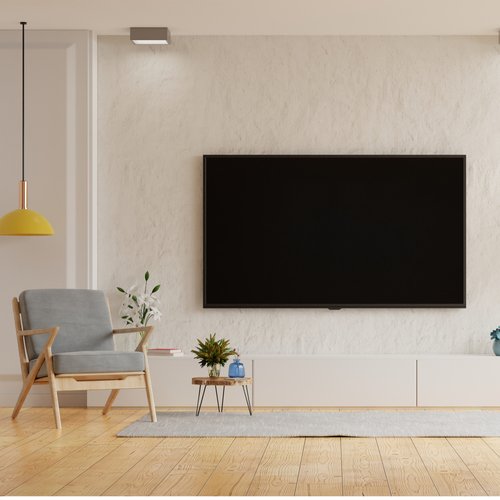 If you prefer that your TV look like a pretty picture when it’s not airing your favorite show, then it’s entirely possible to make that happen, too. There is a good selection online for art and frames or else you can make your own by buying a remotely controlled shade. Just glue a painting canvas to an electric window shade that rolls up and down, then mount it inside a frame with the TV.